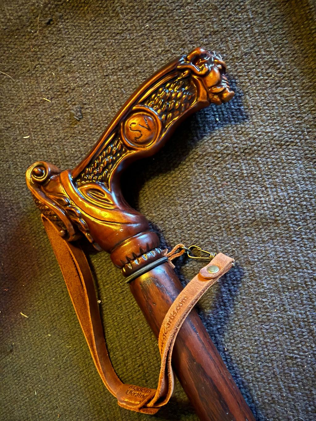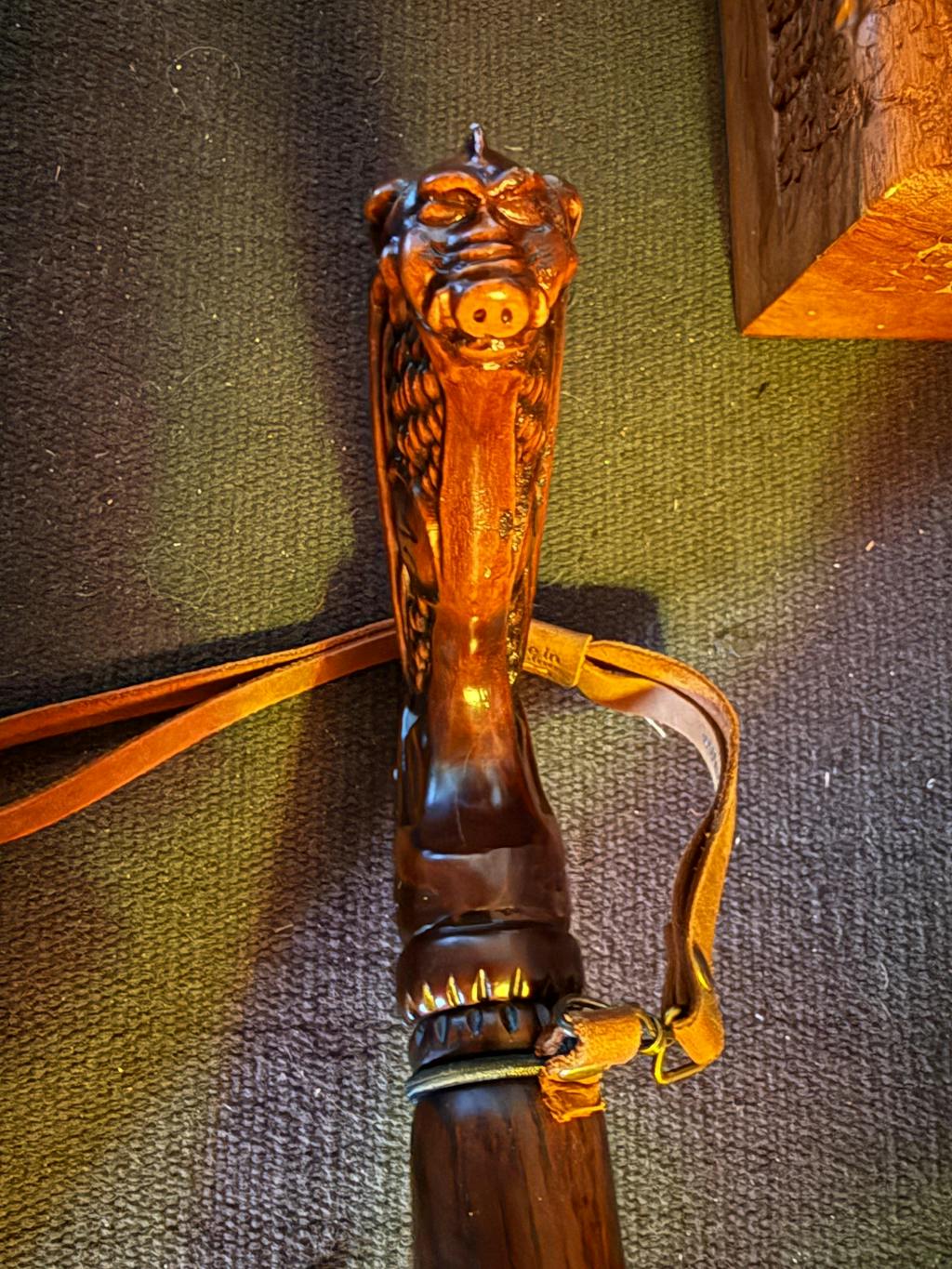 Ця тростина від кабана зроблена з любов'ю з натурального матеріалу та несе сильну енергетику своєму власникові: ми використали Дуб, який має глибоке значення в міфології - повільне зростання, дуже міцна та вражаюча деревина
